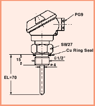 built-in sensor with Cu ring sealing pressure sealed up to 15bar |