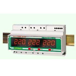 Vip39din is a 9 DIN module multi-functional instrument ideal for the measurement and display of electrical parameters. The large clear led displays showing the parameters and values are easily read under all lighting conditions. The instrument displays up to 22 parameters (see table), and is suitable for installation in single phase, two phase and three phase systems. Connection is via sturdy 2.5 mm2 terminals and 5A secondary CTs for current measurement. Operation is via a simple pushbutton located on the front panel, with set up keys hidden behind a hinged cover.