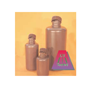 density polyethylene with polyallomer screw caps. 32 oz Narrow-Mouth Bottle