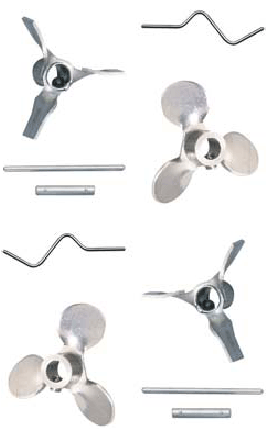 | Stainless steel propellers, mixing blades, and stirring shafts for CON-TROL-CURE¢â mixer models J009-049 and J009-050. |