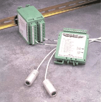 Each rail mounted module allows for monitoring of a single UV lamp. |