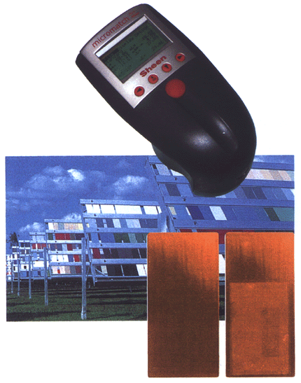 | Two samples of an identical colour but having different gloss levels appear different, the high gloss sample looks darker, while the low gloss sample looks lighter, In order to evaluate the colour changes depending on the gloss variations the Micromatch Plus gloss offers the possibility of simultaneously measuring colour and gloss (at 60¢ª) on the same spot. This unique feature simplifies and speeds up analysis or QC procedures.